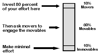 Begin by putting members of the group that would be affected by the proposed change into one of the three categories illustrated in the following figure, that is, the movers, the movables, and the immovables.11