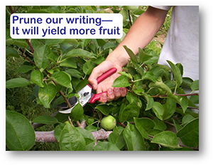 - You are leading a writing workshop for your firm and want to stress the value of carefully editing writing so as to get rid of unnecessary words. Given the importance of vision – the dominant sense – you do not use a boring text-only slide with bullets. Instead, because of your understanding of composition rules, you prepare the following strongly visual slide. It uses an off-center arm and hedge clippers, bold positive space, and a strong focal point to communicate your pruning advice.